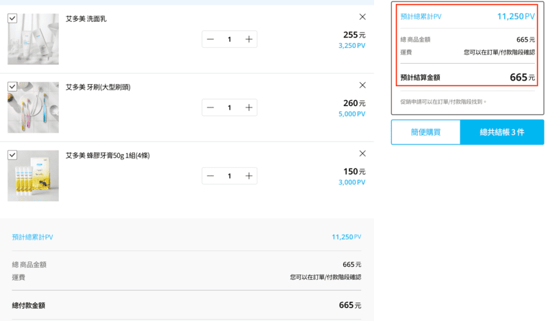 這些都是我平常就會用的東西,加起來才665元,PV就超過10000。根本不用刻意湊、也不沒有囤貨,就自然達標。